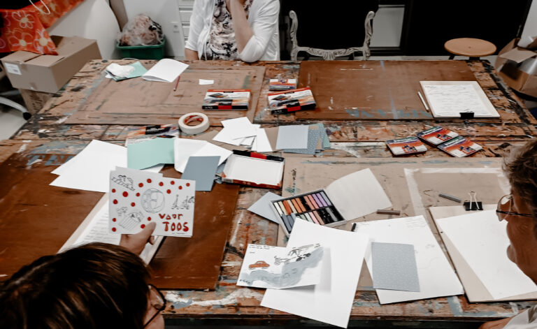 Mijn werkwijze is geïnspireerd op principes uit Art-Based LearningVisual Thinking Strategies (VTS), See-Think-Wonder methode en Reggio-geïnspireerde pedagogiek. Deze benaderingen stimuleren deelnemers om hun eigen waarneming serieus te nemen, betekenis te geven aan wat zij zien en dit te vertalen naar beeldend werk.